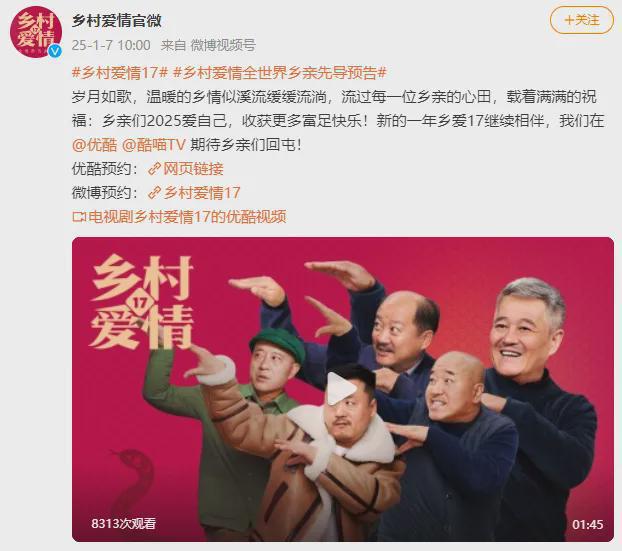 1 月 7 日,乡村爱情官微发布了《乡村爱情 17》先导预告。